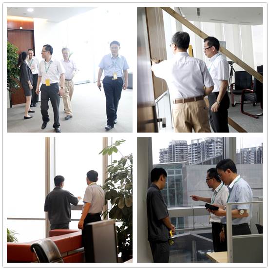 9月27日下午,由集团纪委书记黄威飘、副总经理黄昆明带队组成集团安全生产巡视小组,对集团自用楼层开展逐层巡视,重点排查门窗玻璃关闭情况,并指导值班人员对可能引起雨水倒灌的隐患点进行防洪加固处理。