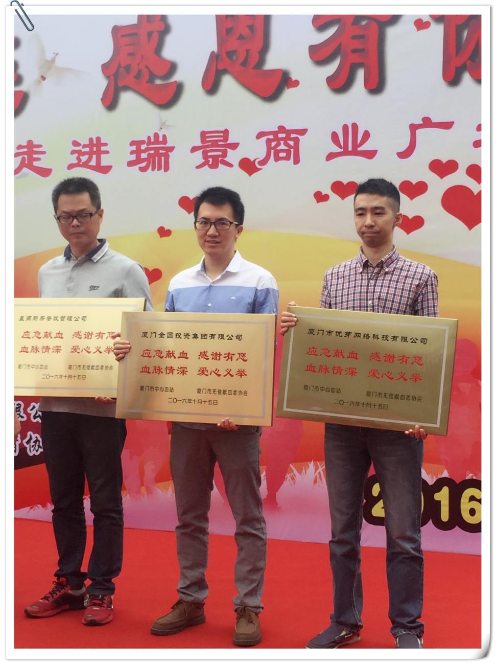 10月15日,由厦门市中心血站、厦门市无偿献血者协会举办的“血脉相连 感恩有你”无偿献血活动颁奖仪式上,金圆集团作为获奖单位接受了这一荣誉的表彰。
