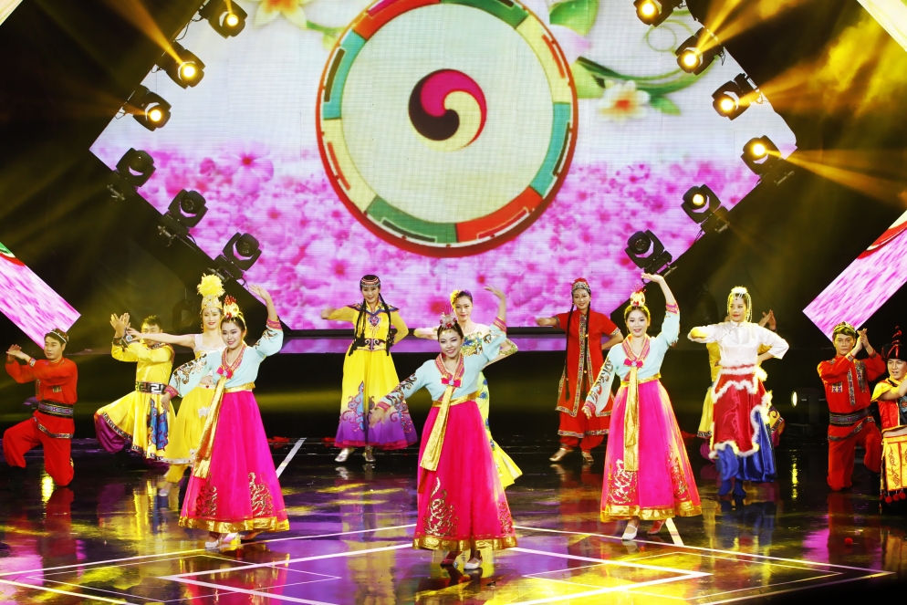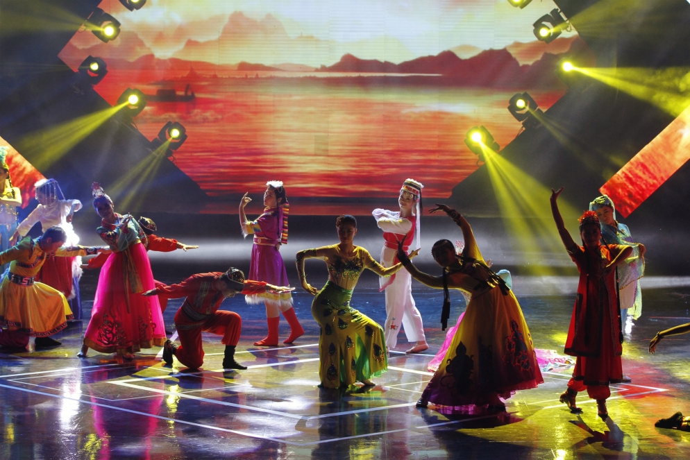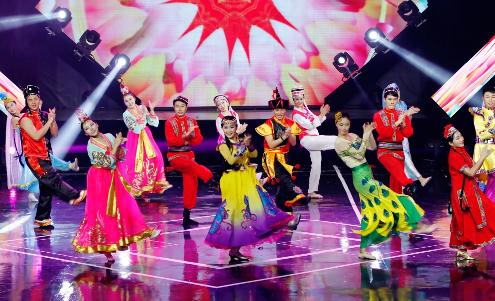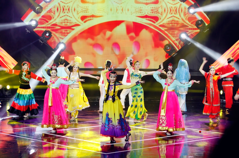 由金圆集团选送的舞蹈《锦绣中华》作为决赛现场的第6个节目,在节奏鲜明、磅礴大气的音乐声中震撼登场。这是一支象征祖国花开盛世、繁荣向上的多民族大团结舞蹈。舞蹈展现了彝族、蒙古族、维吾尔族、朝鲜族、傣族等少数民族的特色,音乐热情洋溢,服装色彩缤纷,节奏欢快明朗,青春气息十足,充分展现了金圆集团员工生机勃勃的精神面貌。