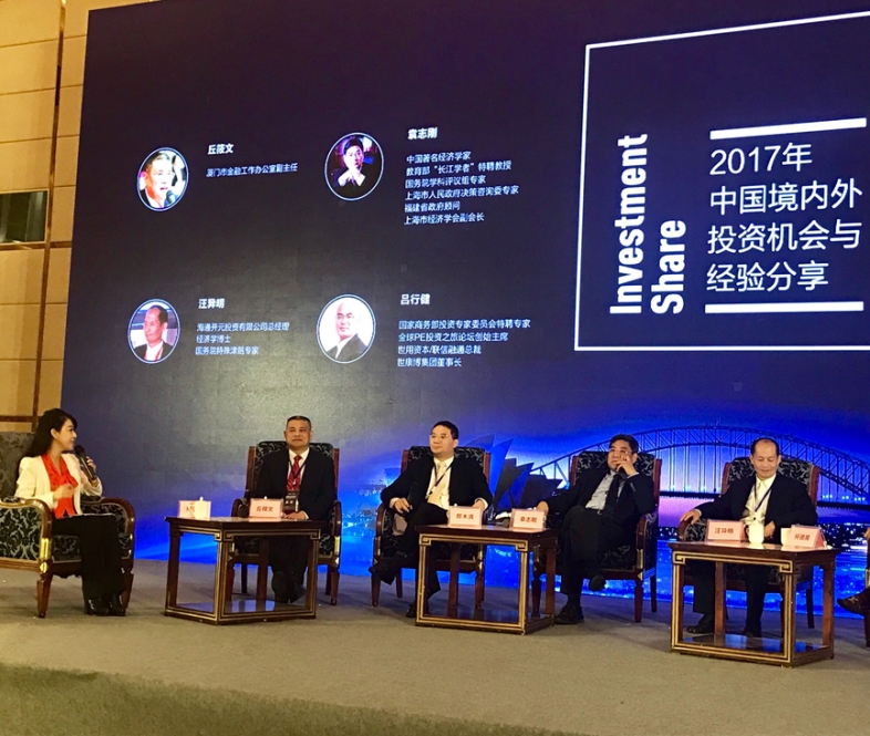 论坛上,中国著名经济学家、教授袁志刚先生深度解读中国经济与金融发展趋势;澳大利亚经济金融专家符晓女士做"澳洲投融资的机遇与前景主题演讲";澳洲最大的金融集团之一、宝泽资本中国市场执行董事许基云先生发表关于中国企业赴悉尼证交所上市路径演讲;市金融办副主任丘筱文、袁志刚、郑木清、海通开元投资总经理汪异明、许基云、国家商务部投资专家委员会特聘专家吕行健等围绕“2017年中国境内外投资机会与经验分享”做圆桌讨论。