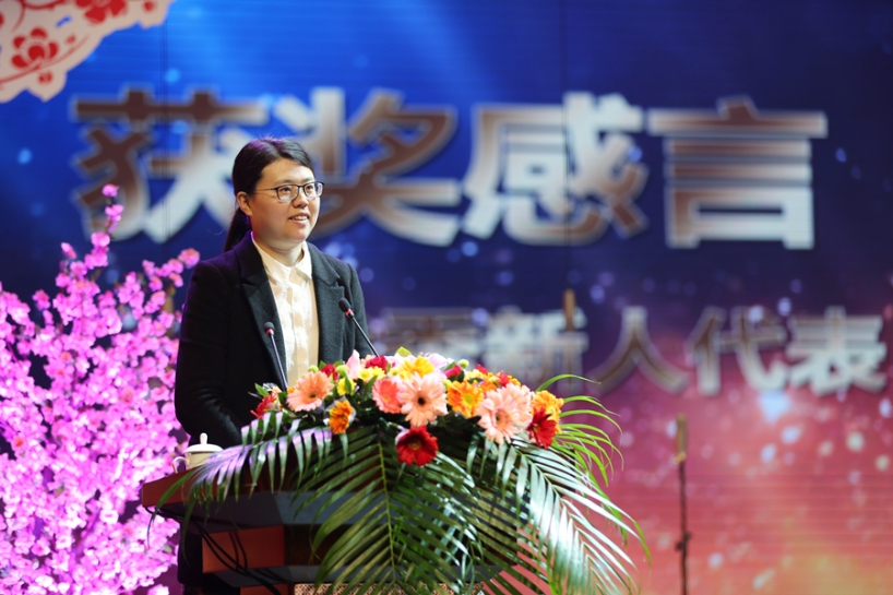 优秀新人代表杨慧敏发表获奖感言