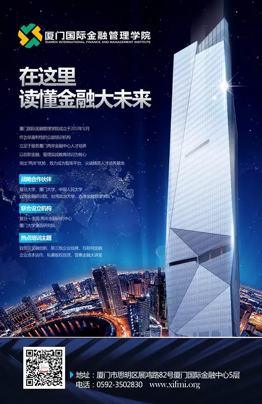 从股权方面的天使投资、vc、pe 到并购、上市,再从债券、股票、定增到信托、房地产、艺术品等投资。面对众多的选择,厦门国际金融管理学院依托两岸金融中心深厚的金融文化底蕴,联合国内外名牌高校、业内一线金融机构、几十位重量级专家,倾力打造,隆重推出《股权投资与财富管理高级研修项目》。力图从传统与前沿、国内与国际、现状与趋势等多个角度,为学员提供股权投资、金融产品投资、另类投资、跨境投资的全方位专业课程。