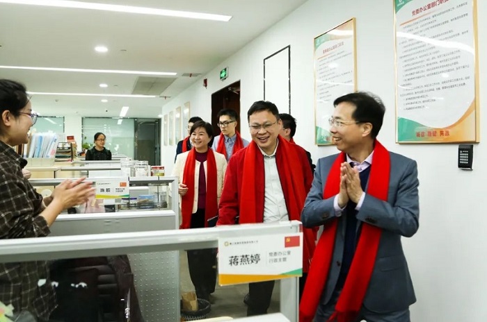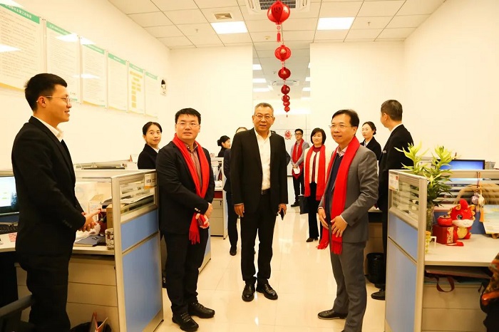 2月18日,龙年开工第一天,金圆集团党委书记、董事长檀庄龙,党委副书记、总经理李云祥一行走进集团本部、金圆置业、金美信消费金融、金圆大厦工地、金圆·金融公寓、市行政服务中心厦房担保窗口、厦门银行等单位,向广大一线干部职工送上新春祝福,共同吹响“开门红”“开门稳”冲锋号。