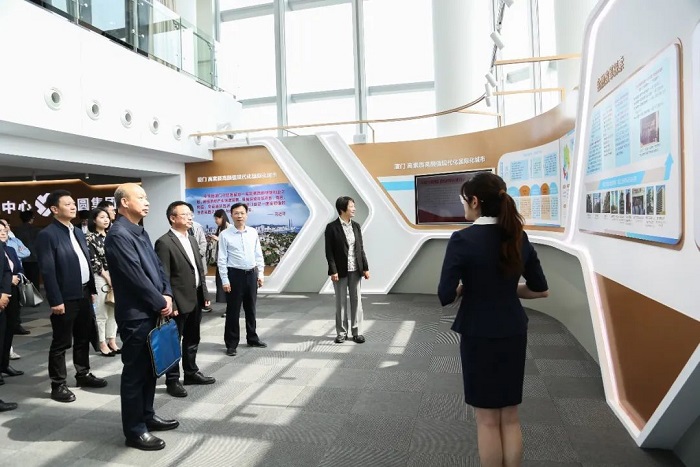 调研组一行参观两岸金融中心·金圆集团展厅,重温厦门市金融体制改革和厦门金融业发展历史沿革,详细了解金圆集团服务实体经济的创新举措,高度赞赏了金圆集团推动资本招商、促进产业发展、服务城市建设取得的工作成效。