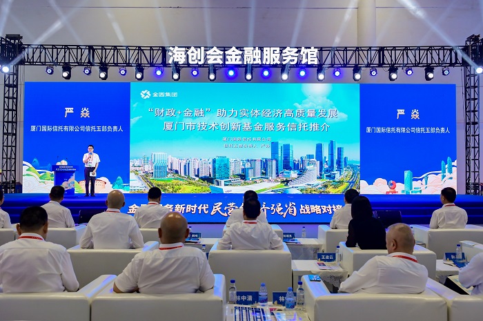 会上,厦门国际信托有限公司信托五部负责人严焱上台推介厦门市技术创新基金和金圆集团“财政政策 金融工具”服务举措。