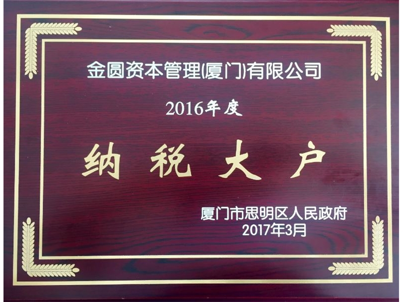 近日,厦门思明区人民政府作出关于表彰辖内纳税大户的决定,金圆资本管理(厦门)有限...