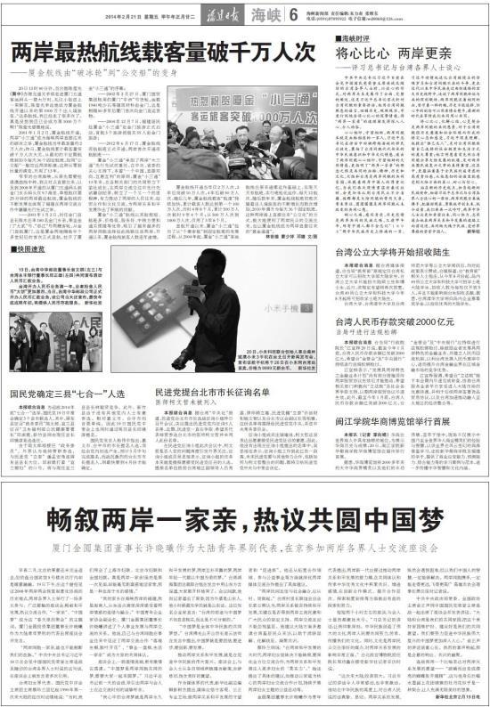 早春二月,北京的寒意还未完全退去,但钓鱼台国宾馆5号楼庆功厅内却是暖意融融。19日下午,在这个曾经见证2008年两岸两会恢复制度化协商的历史地点,两岸各界人士举行了一场多元参与、广泛接触的座谈会,畅叙和平发展,热议交流合作,“一家亲”、“中国梦”成为这“春天里的聚会”的主题词。