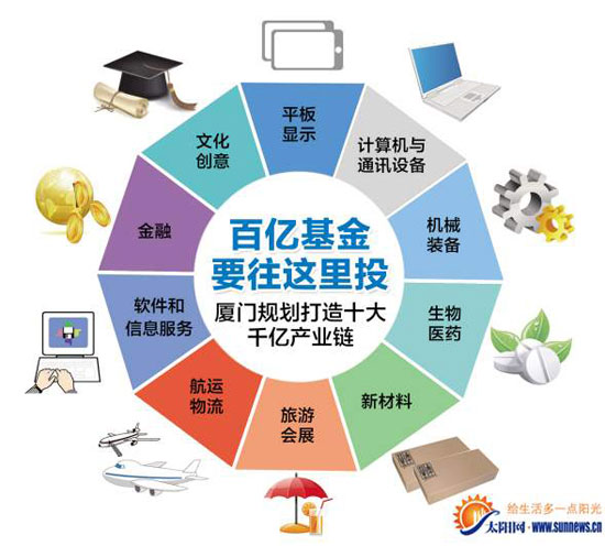晨报记者注意到,这一由市政府设立的厦门市产业引导基金,初期规模约为100亿元,其中市财政首期将出资50亿元,以撬动社会资本参与厦门十大千亿产业链建设。