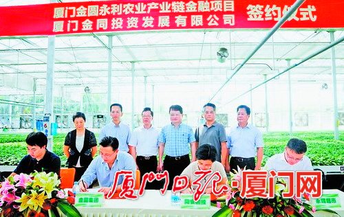昨天上午,金圆集团全资子公司厦门金融控股有限公司、厦门市同安区市场建设管理有限公司、福建永辉现代农业发展有限公司、厦门百利种苗有限公司共同出资成立的厦门金圆永利供应链金融信息服务有限公司在位于同安竹坝的百利育苗温室大棚内举行签约仪式,这是一场事关同安农业现代化发展的签约仪式。据悉,该项目将打造“互联网 农业 金融”的模式,通过互联网技术为农业产业链的上下游客户提供高效、便捷、安全的金融服务,致力于解决“三农”融资难问题,推动现代农业发展,带动农民转产转业致富,打造现代农业发展模式。