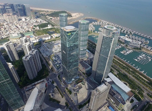 由金圆集团投资建设的厦门国际金融中心。(资料图/本报记者 王火炎 航拍器 摄)