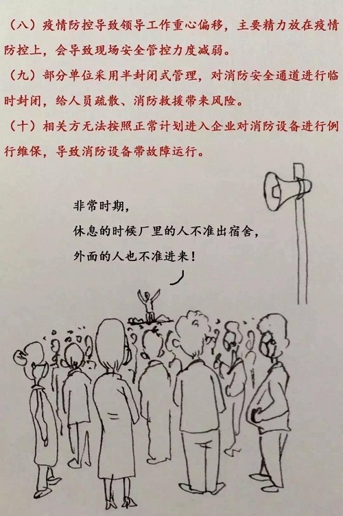 各企业、各单位要对各级消防安全组织和消防管理人员在位情况进行一次梳理,因疫情等导致人员流失、空缺的,要及时补缺。要明确各级、各岗位消防安全职责,对各级、各岗位人员消防安全职责进行一次提醒,强化其消防安全意识,确保内部消防安全管理正常运行。