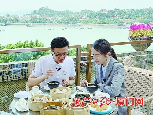 在“厦门文旅消费十二时辰”直播中,厦门国际信托“前线体验员”为厦门文旅产品直播“带货”。(厦门国际信托供图)