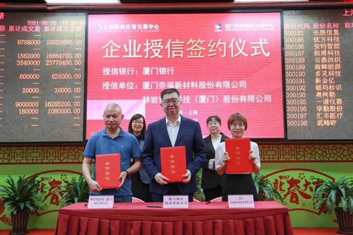 厦门银行在本次活动中为厦门奈福新材料股份有限公司及耕岩智能科技(厦门)股份有限公司进行台资企业授信。两家台资企业在获得银行机构的授信之后,将会加快成长的脚步,为下一阶段的发展增速。