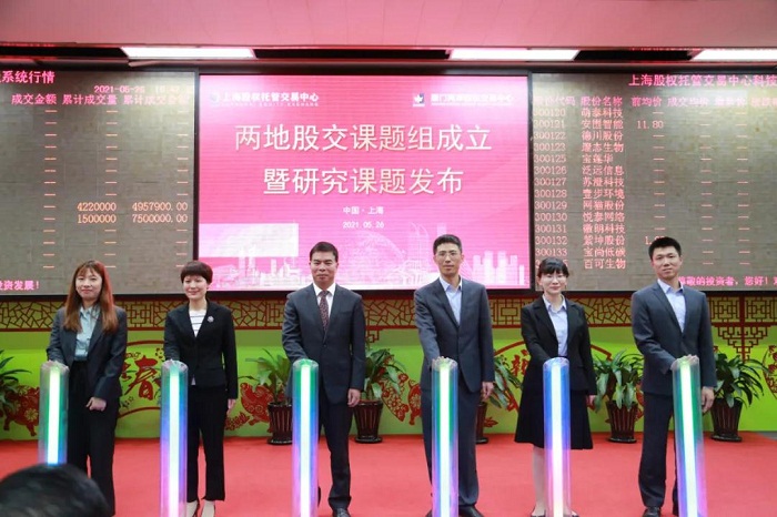 活动尾声,厦门两岸股交中心与上海股交中心共同成立课题研究小组,发布主题为“双循环新发展格局下资本市场服务区域经济发展研究”与“台资企业特色服务体系的探索”的两个课题。