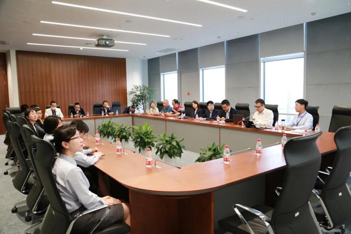 5月26日下午,受邀参加活动的各单位、各机构负责人、各企业代表共同前往上海证券交易所参观访问。参访完毕后,一行人前往上海证券交易所会议室进行座谈交流。