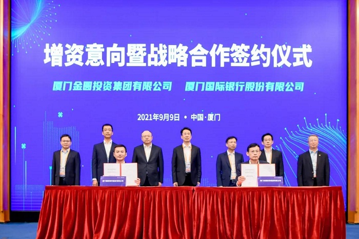 9月9日,厦门金圆投资集团有限公司(以下简称“厦门金圆集团”)与厦门国际银行签订战略合作协议。厦门金圆集团党委委员、总会计师杨清榕,厦门国际银行党委委员、副行长兼任中国境内总经理黄大庆代表双方签订了合作协议。