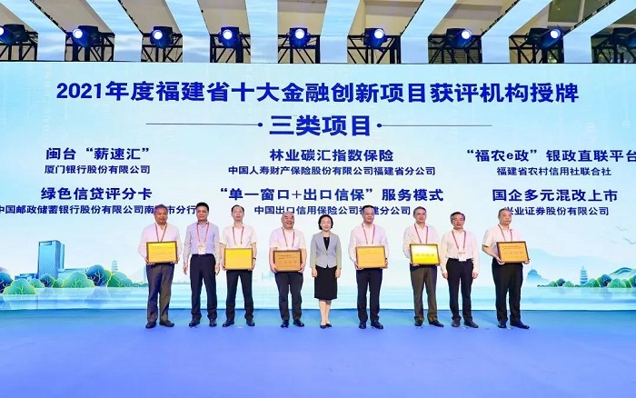 该评选活动由福建省金融办、人行福州中心支行、福建银保监局、福建证监局联合开展,组织申报、评选的省级重磅奖项,每年评选出十个最具金融创新代表性的项目并予以表彰,旨在推动金融服务创新,引导金融机构推出更多符合实体经济需求的新型金融产品和服务,代表了福建省金融业创新的最高水平。