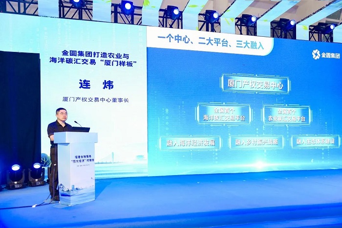 厦门产权交易中心董事长连炜分享了以“一个中心、二大平台、三大融入”为抓手,擦亮普惠金融绿色底色,打造农业碳汇和海洋碳汇交易“厦门样板”的创新举措,并介绍了下一步工作思路和绿色发展规划。