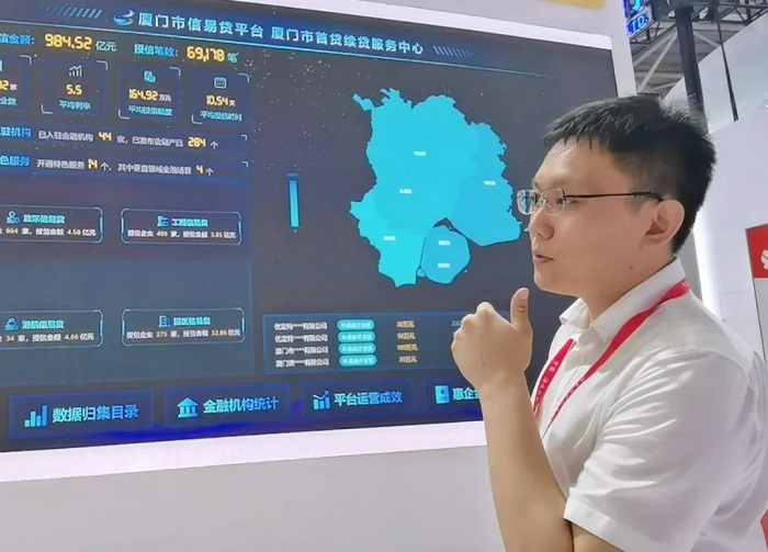 我觉得今年展会上科技感更强了,不仅在展示形式上不断创新数字科技的运用,在展示内容上科技含量也明显变多了。像我们中小在线展示的信易贷平台“厦门样板”,以“信用大数据 金融科技 普惠金融”的创新服务模式,通过金融资源汇聚、数据共享应用、垂直场景创新、金融政策协同等方式,让信用良好的企业更容易获得融资,切实解决中小微企业融资难题。