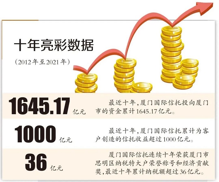 厦门国际信托深度参与厦门市国际化、现代化产业引进和就业创造,发挥在全国展业的优势,善用金融工具先行先试,服务政府,连接企业,赋能重大项目,支持岛内外产业建设和生态发展。