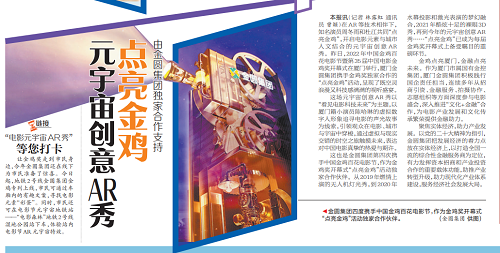 11月11日,厦门日报刊文报道“金圆·点亮金鸡”活动