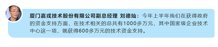 嘉戎技术的发展正是厦门推动民企创新发展的一个缩影。为了帮助民营企业开展技术改造,我市还设立了专项资金,去年对773个工业项目补助8.5亿元;2022年1月至2023年6月,对14个民营企业省内首台(套)重大技术装备项目,给予补助超过1500万元。