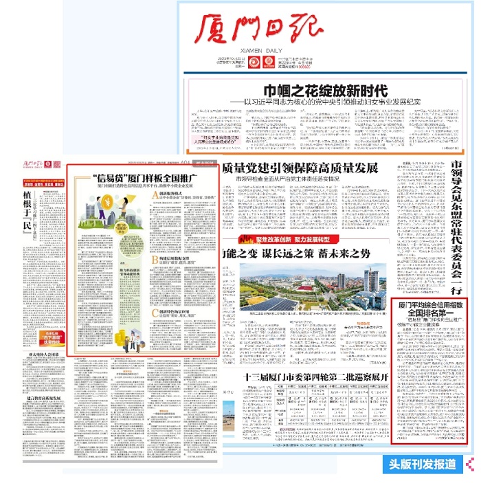 探索试验、探路先行。作为全国首批信用示范城市,厦门创新信用服务中小微企业融资、“信用就医”等惠企便民举措,积极探索数据开放创新合作模式,充分挖掘公共信用信息价值,打造信用大数据在金融信贷、公共服务等领域的创新应用场景。其中,厦门市“信易贷”平台作为全国一体化融资信用服务体系首个地方平台,积极联合金融机构创新开发产品服务和应用场景,提升中小企业融资的可得性、便利性和满意度,获评国家发展改革委“全国中小企业融资综合信用服务示范平台”、全国观摩评比第二名,并形成“信易贷”厦门样板向全国推广复制。