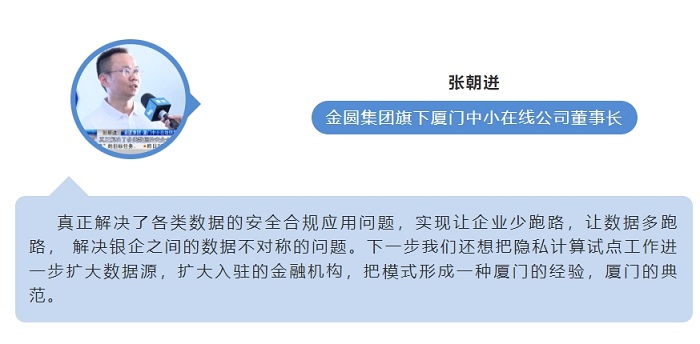 目前,市公共信用信息平台已和62个系统对接,汇集69个部门17.02亿条数据,百分百覆盖全市法人和自然人;建设上线的“信用信息在金融领域创新应用共享专题库”,部署数据共享交换通道,形成覆盖全市18个单位、61个数据项、524个字段的金融领域信用数据共享应用清单,推动信用数据在金融领域赋能。与此同时,我市还在全国首开先河,率先在“信易贷”应用领域开展隐私计算试点,让银行“敢贷、能贷、愿贷”,推动信贷精准投放。