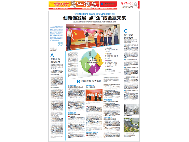 刊于20180727《厦门日报》a07整版 金圆集团成...