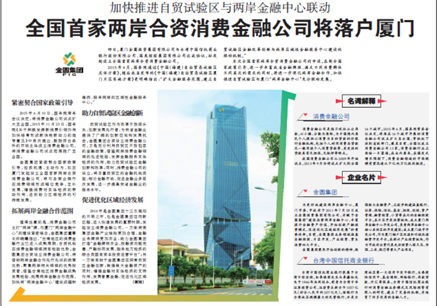 昨日,厦门金圆投资集团有限公司与台湾中国信托商业银行股份有限公司、国美控股集团有...