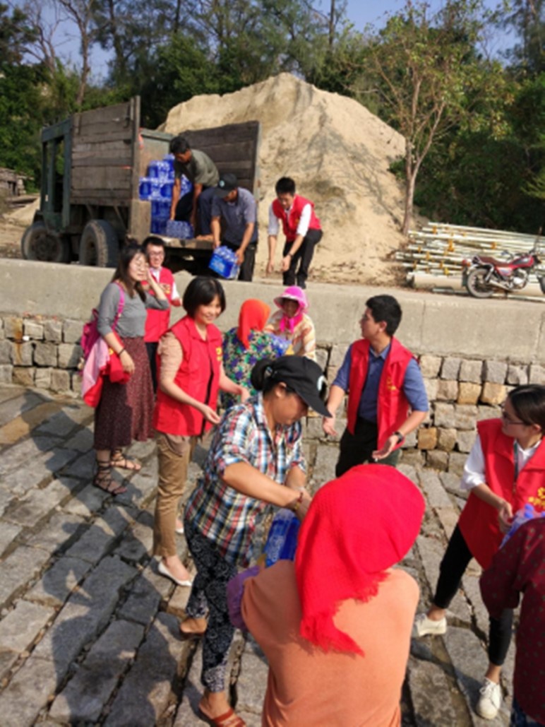 一方有难,八方支援。9月18日下午,在得知小嶝社区的情况后,集团领导高度重视,马上组织捐赠小嶝岛急需的饮用水和食物。2016年9月19日中午,厦门金圆集团投资有限公司向大嶝街道小嶝社区居民捐助1500箱纯净饮用水和9000包方便面。