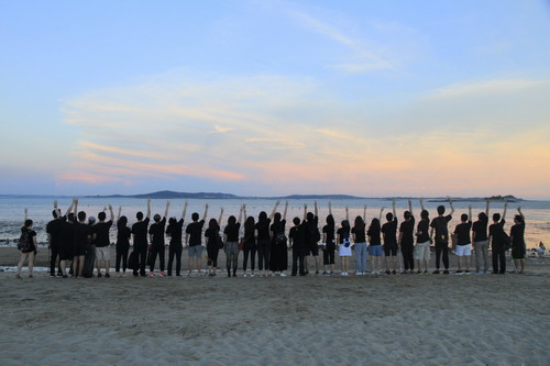 从马路到沙滩,天气虽然炎热,但大家一路上热情高涨、步伐紧凑、紧密协作。傍晚的环岛路海滩,在绚烂的晚霞映照下,经过同志们的细心挑捡,显得更加整洁、美丽。