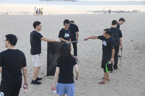 会后,创投公司全体步行前往金砖会场附近沙滩,并一路拾捡白色垃圾。