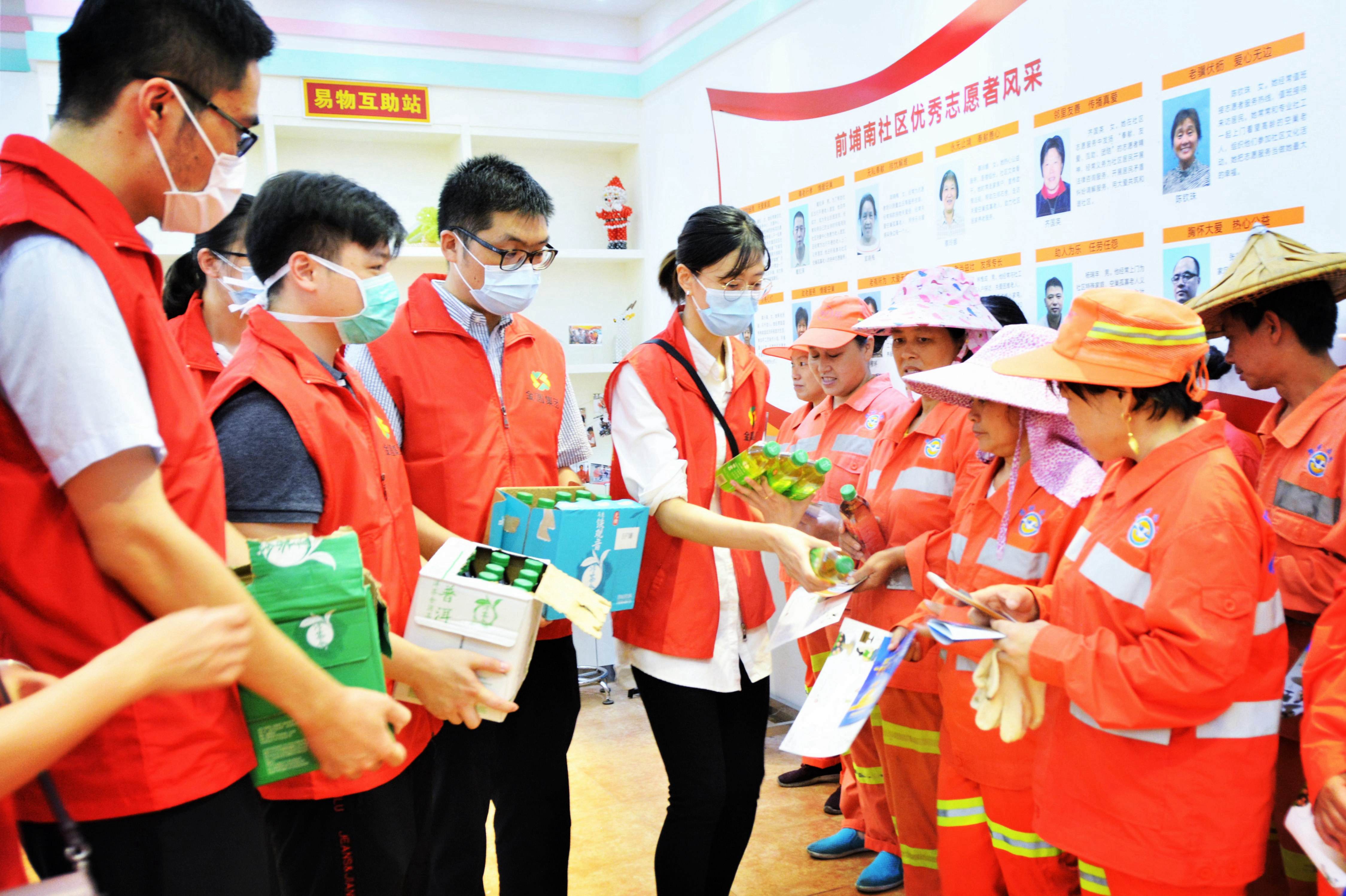 紧接着,志愿者们来到莲前街道前埔南社区环卫工人“爱心驿站”,关心慰问环卫工人。“爱心驿站”聚焦环卫及养路工人等特殊岗位群体,提供饮用茶水、加热饭菜、避风遮雨等便利服务。志愿者们代表集团向莲前街道爱心驿站和环卫所捐赠共计100箱矿泉水和凉茶,感谢他们为城市建设付出的辛劳与汗水。活动中,志愿者们还为环卫工人带去防范电信网络诈骗小技巧、防范非法集资等金融知识宣传,帮助他们提升金融风险防范意识。