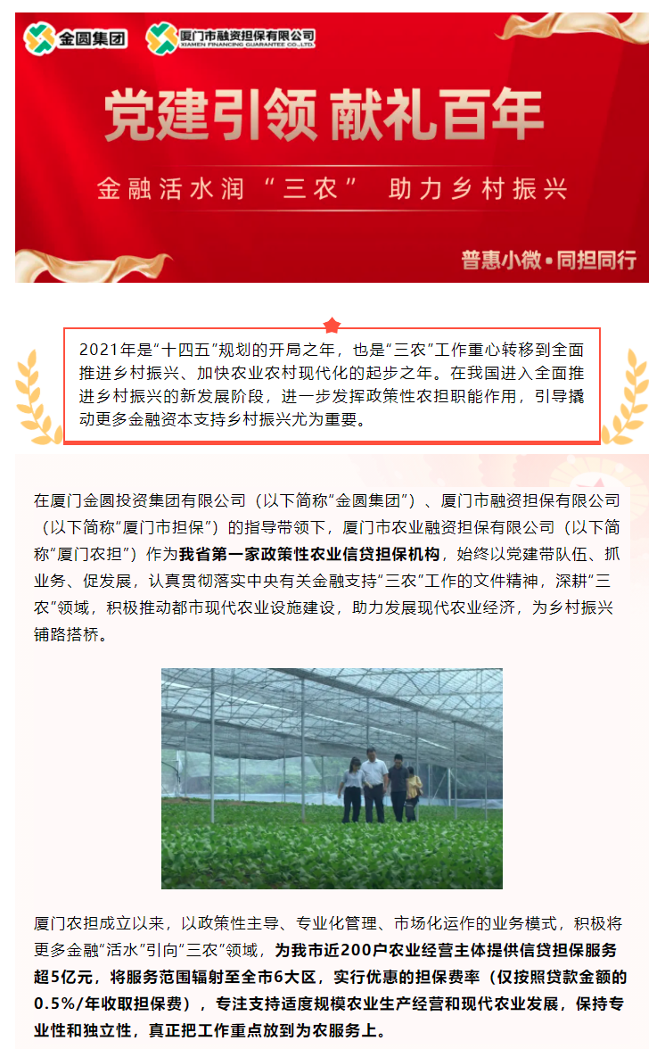 下一篇:党建引领•献礼百年 | 厦门市担保:爱心诠释责任 行动书写担当