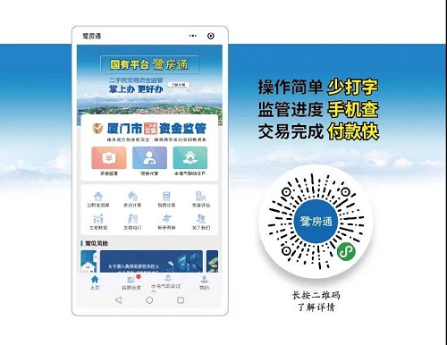 9月23日,刘女士和卖方林先生在经纪机构网签完毕,经纪人现场就通过二手房交易资金监管掌上服务平台“鹭房通”微信小程序发起了资金监管申请,并同时发送给买卖双方的微信签字确认,隔日,刘女士通过线上缴款近1200万进入资金监管账户。9月25日,监管房款就如约划转给卖方,林先生表示,“资金监管全程线上办服务不仅高效便捷,在全市战“疫”的特殊期间,这种线上零接触的办理方式,更让人安心。”