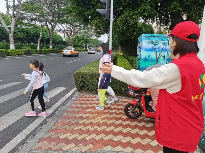 根据市委文明办的要求,金圆集团在新一轮的文明创建工作中,认领了莲前东路前埔路口的交通督导志愿服务点。从10月23日起,根据交警中队的排班要求,先后派出40余名志愿者,在工作日下班高峰期及周末出行高峰时段,上岗进行“文明交通督导”志愿服务,协助民警对一些交通违法及不文明交通行为进行劝导。