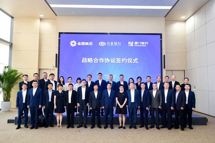 7月28日上午,金圆集团、厦门银行与兴业银行签署战略合作协议,将在巩固现有业务合作的基础上,加强传统信贷、贸易融资、绿色金融、个人金融、投资银行、资产托管等领域全面业务合作。