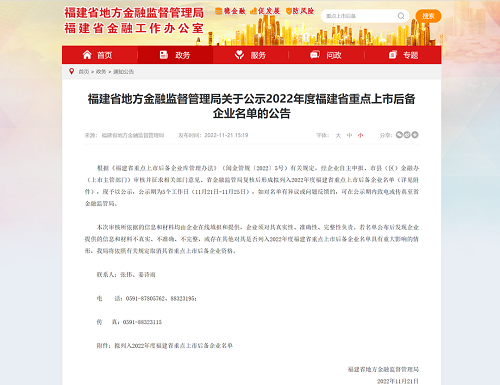 《2022年度福建省重点上市后备企业名单》