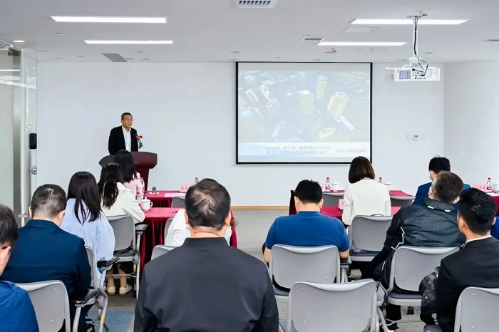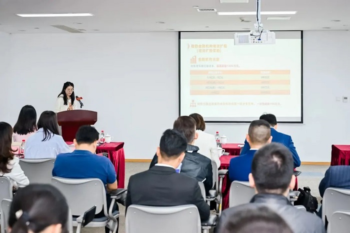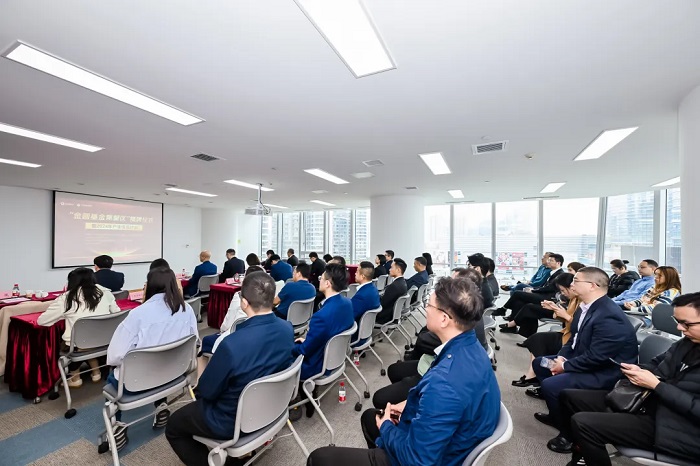 金圆置业总经理饶朝榕详细介绍金圆基金集聚区的服务优势和特色亮点。