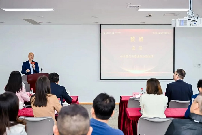 厦门市委金融办副主任连任,思明区政府党组成员连友仁,金圆集团党委委员、副董事长张永欢,思明区财政局副局长张晓晨共同为“金圆基金集聚区”揭牌。