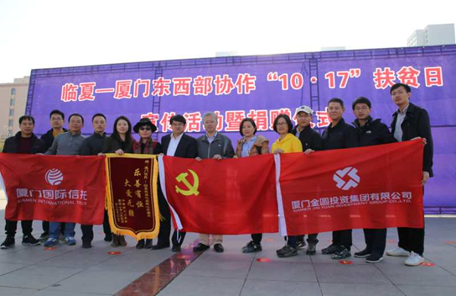 今年10月17日是第5个中国扶贫日和26个国际消除贫困日,为响应厦门市委关于做好东西部扶贫协作、对口支援,坚决打好扶贫攻坚战的号召,金圆集团主动发挥国有金融企业在甘肃临夏州扶贫协作中的作用,由集团纪委书记、工会主席黄威飘带队考察临夏回族自治州,并参加临夏-厦门东西协作扶贫日宣传活动暨捐赠仪式。捐赠仪式上,国际信托党委副书记、总经理李自成代表公司接受临夏州扶贫办授予的锦旗。临夏州委常委、副州长邱武伟出席捐赠仪式,并会见了考察组一行,介绍了厦门市在对口帮扶,扶贫攻坚的目标任务以及在推进东西协作的工作情况。